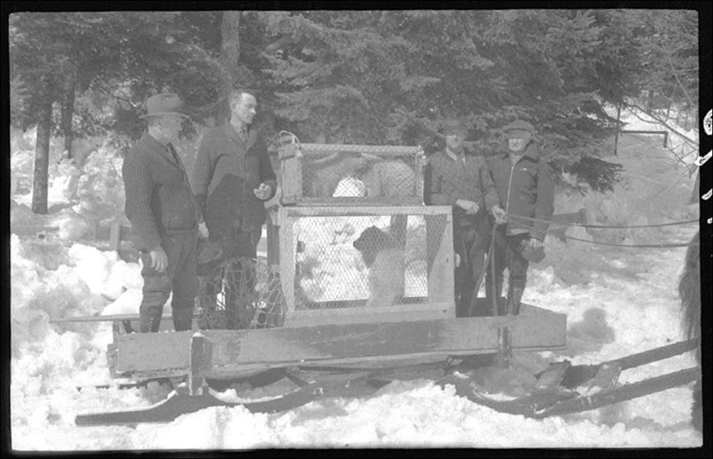 Ours polaires au jardin zoologique de Québec, 1943, Archives nationales à Québec, Fonds Ministère de la Culture et des Communications, (03Q,E6,S7,SS1,D2,P11795), Docteur R. Bernard.