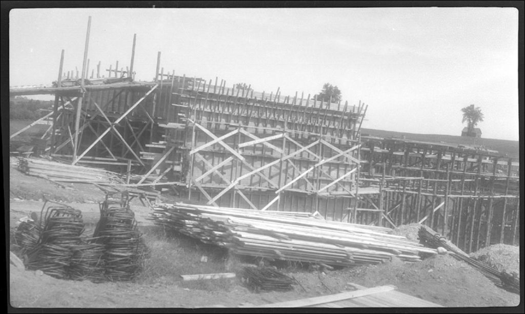 Route Sir Wilfrid Laurier. La culée no 1 et le pilier no 2 du pont à Saint-Léonard, comté de Nicolet, 1943, Archives nationales à Québec, Fonds Ministère de la Culture et des Communications, (03Q,E6,S7,SS1,D2,P12871), Louis-Philippe Poudrier.