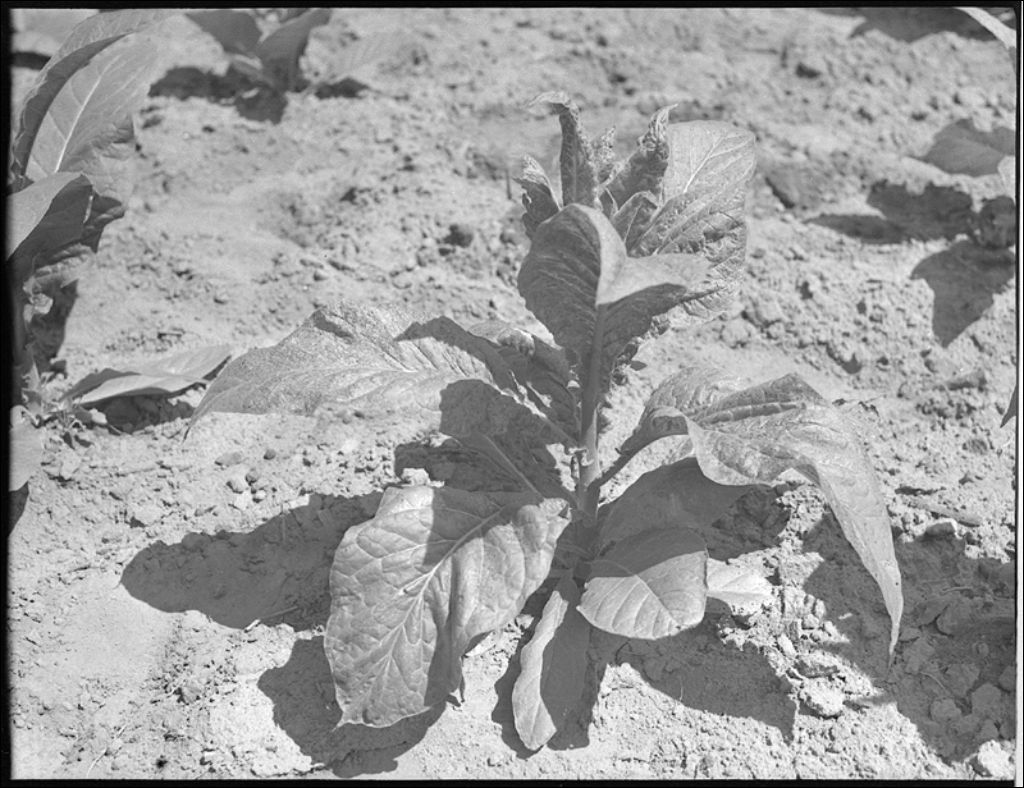 Plants de tabac atteints de mosaïque à Saint-Thomas, comté de Joliette, 1943, Archives nationales à Québec, Fonds Ministère de la Culture et des Communications, (03Q,E6,S7,SS1,D2,P13359), Omer Beaudoin.