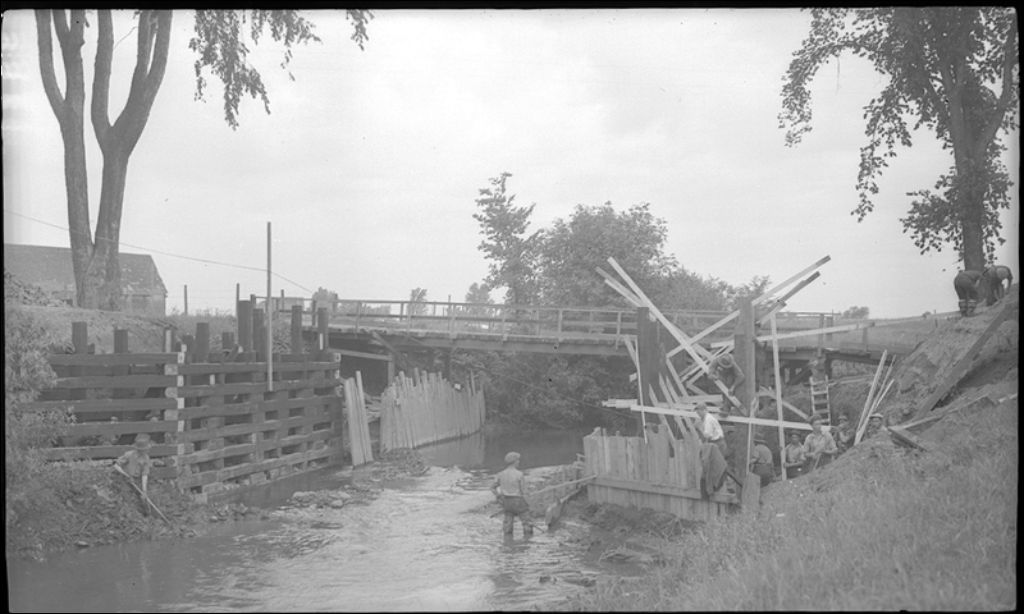 Pont sur la rivière des Mères à Petite-Rivière, 1943, Archives nationales à Québec, Fonds Ministère de la Culture et des Communications, (03Q,E6,S7,SS1,D2,P13564), J.A. Fournier.