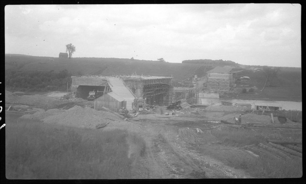 Pont sur le bras nord-est de la rivière Nicolet à Saint-Léonard, 1943, Archives nationales à Québec, Fonds Ministère de la Culture et des Communications, (03Q,E6,S7,SS1,D2,P14607), L. Poudrier.