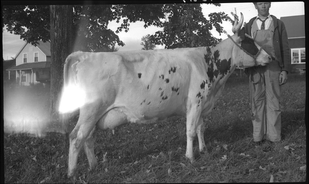Bovins Ayrshire: championne rouge et blanc à Compton, 1943, Archives nationales à Québec, Fonds Ministère de la Culture et des Communications, (03Q,E6,S7,SS1,D2,P15817), François Fleury.