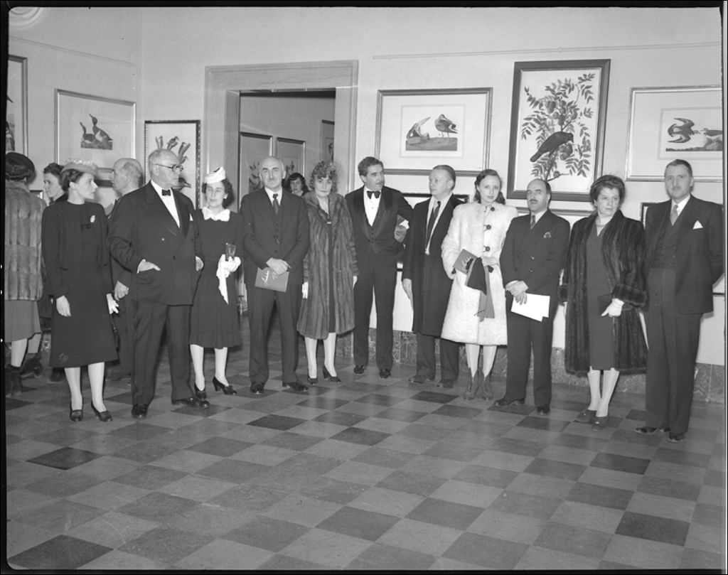 Groupe d'officiels, soirée d'inauguration de l'exposition des gravures d'Aubudon, Musée provincial