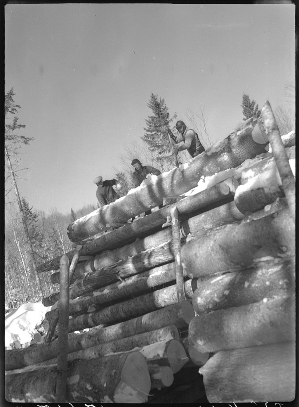 La compagnie Durette et Guérette, entreprise forestière: Billots à Escourt, 1944, Archives nationales à Québec, Fonds Ministère de la Culture et des Communications, (03Q,E6,S7,SS1,D2,P17415), W. Michaud.