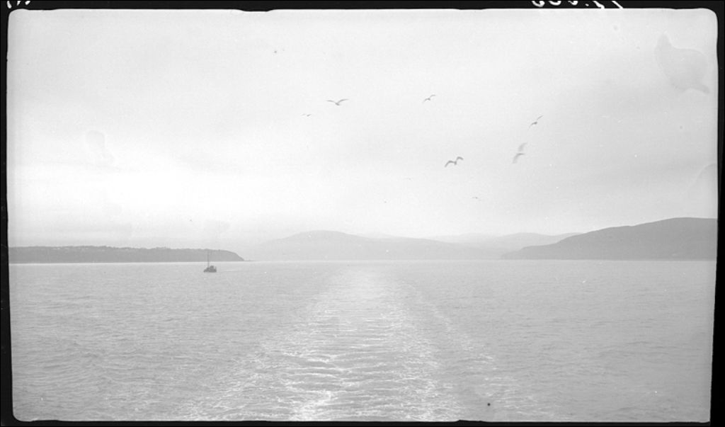La côte à Baie-Saint-Paul. À gauche: la passe de l'Ile aux Coudres, à droite: le cap aux Corbeaux, au fond: la pointe aux Bouleaux et les terres de St-Pierre et St-Paul