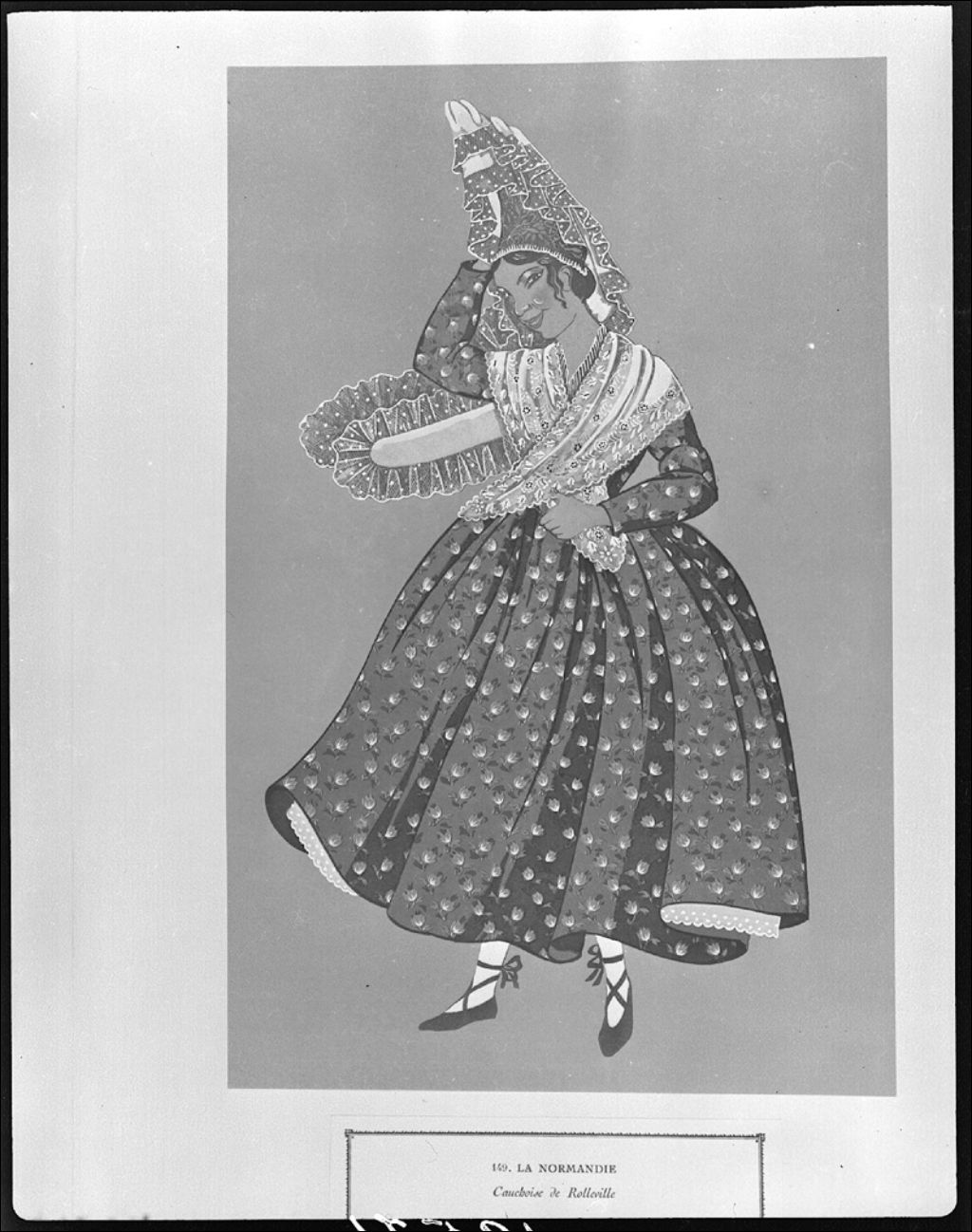 Costumes régionaux de France au XIXe siècle. No 149: la Normandie, Cauchoise de Rolleville, 1944, Archives nationales à Québec, Fonds Ministère de la Culture et des Communications, (03Q,E6,S7,SS1,D2,P19576), Paul Carpentier.