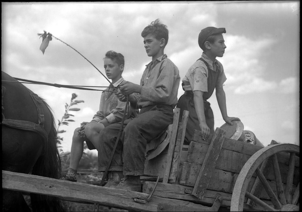 Jeunes agriculteurs revenant de la beurrerie en Beauce
