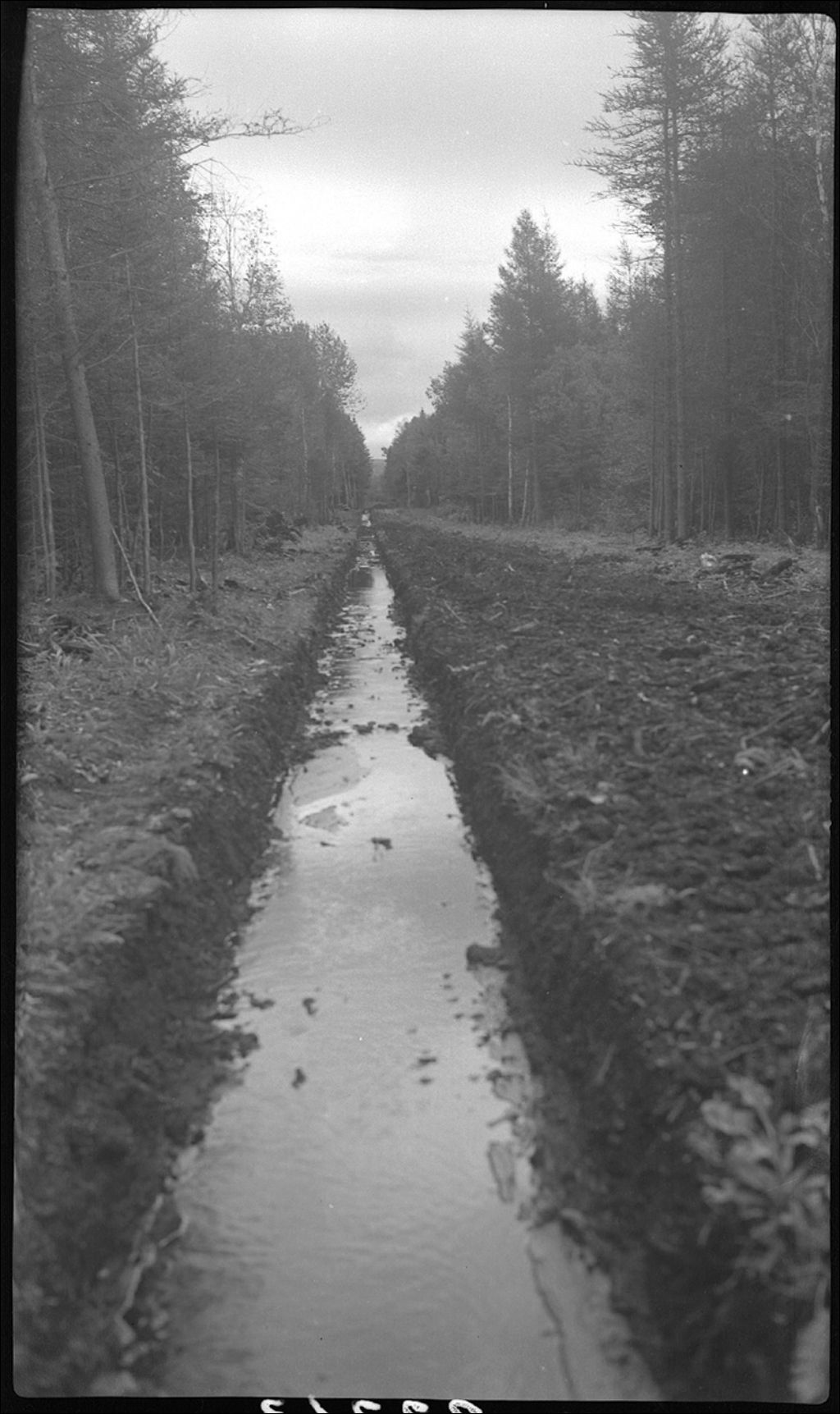 Fossé ouvert par un fermier pour le drainage à Grand-Métis
