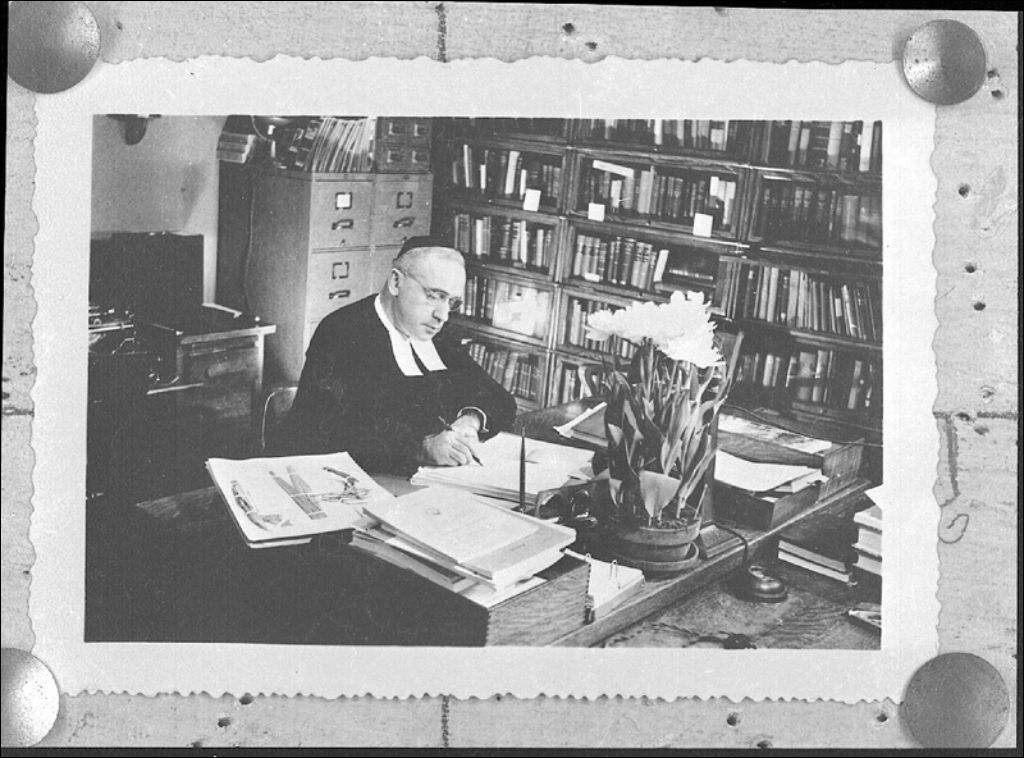 Le Frère Marie-Victorin à son bureau au jardin botanique