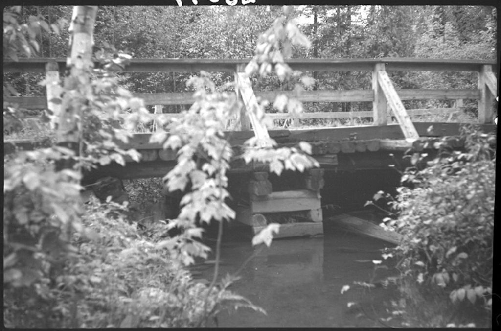 Pont Cross Point sur la petite rivière du Loup à Manneville, comté de Bonaventure, 1944, Archives nationales à Québec, Fonds Ministère de la Culture et des Communications, (03Q,E6,S7,SS1,D2,P23099), G. Brière.