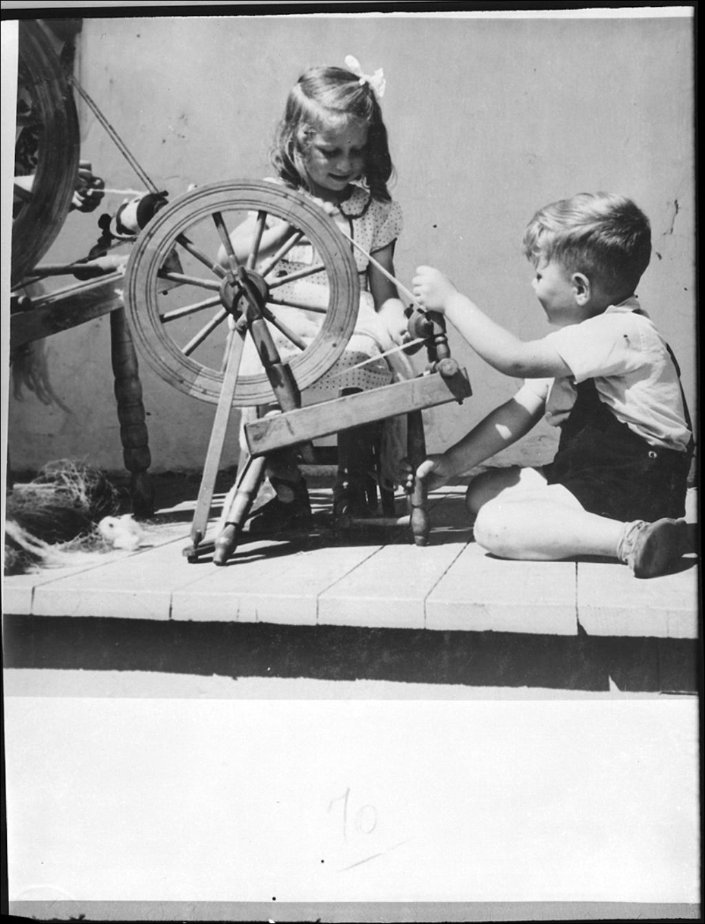 Jeunes enfants de la famille d'Omer L'Heureux avec de petits rouets à Charlesbourg