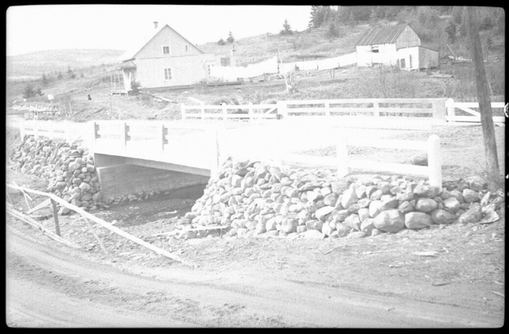 Pont à l'entrée du village sur la rivière Matawin à Saint-Michel-des-Saints, 1944, Archives nationales à Québec, Fonds Ministère de la Culture et des Communications, (03Q,E6,S7,SS1,D2,P24003), Camille Milot.