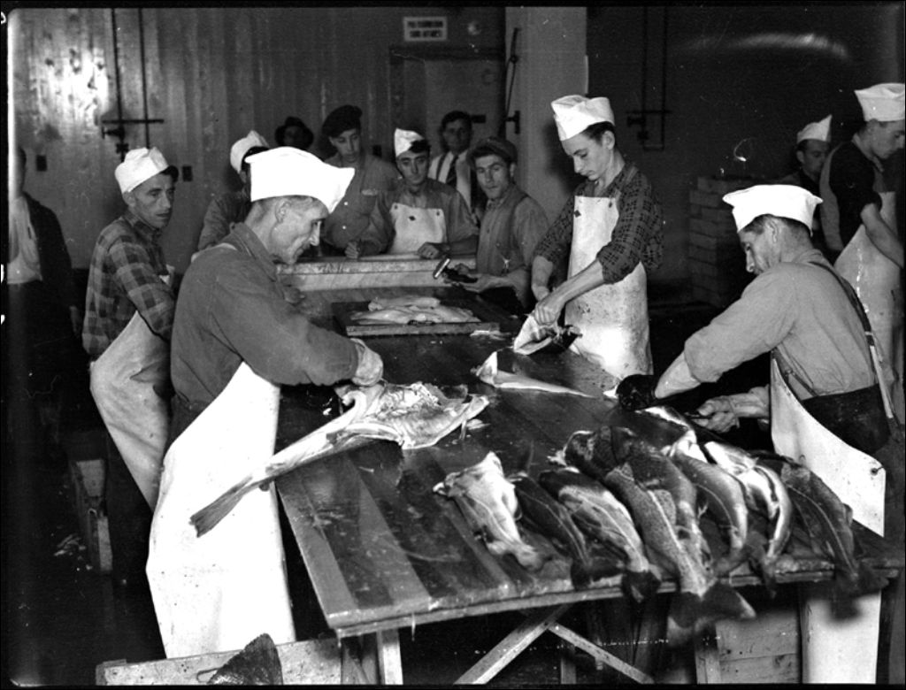 Dépeçage de la morue à Grande-Rivière, 1941, Archives nationales à Québec, Fonds Ministère de la Culture et des Communications, (03Q,E6,S7,SS1,D2,P2468), Docteur Arthur Labrie.