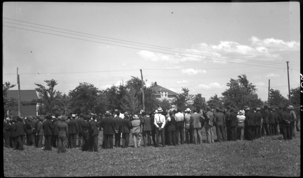 Groupe de congressistes à une exposition, Ferme expérimentale de Ste-Anne-de-la-Pocatière