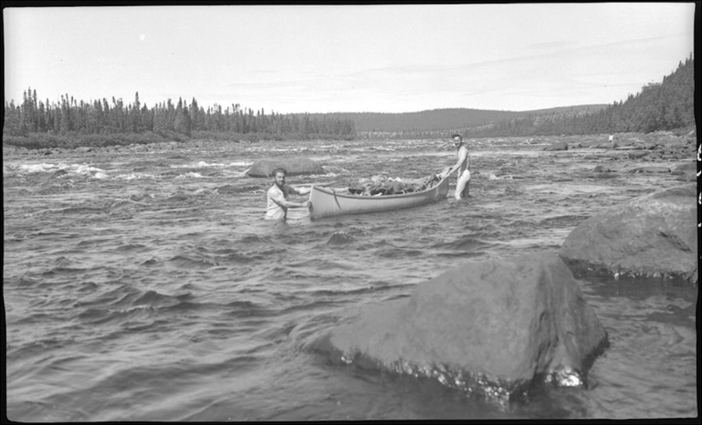 Ascension des rapides de la rivière Romaine, Côte-Nord. De gauche à droite : Nelson Gold et Omer Lebrun