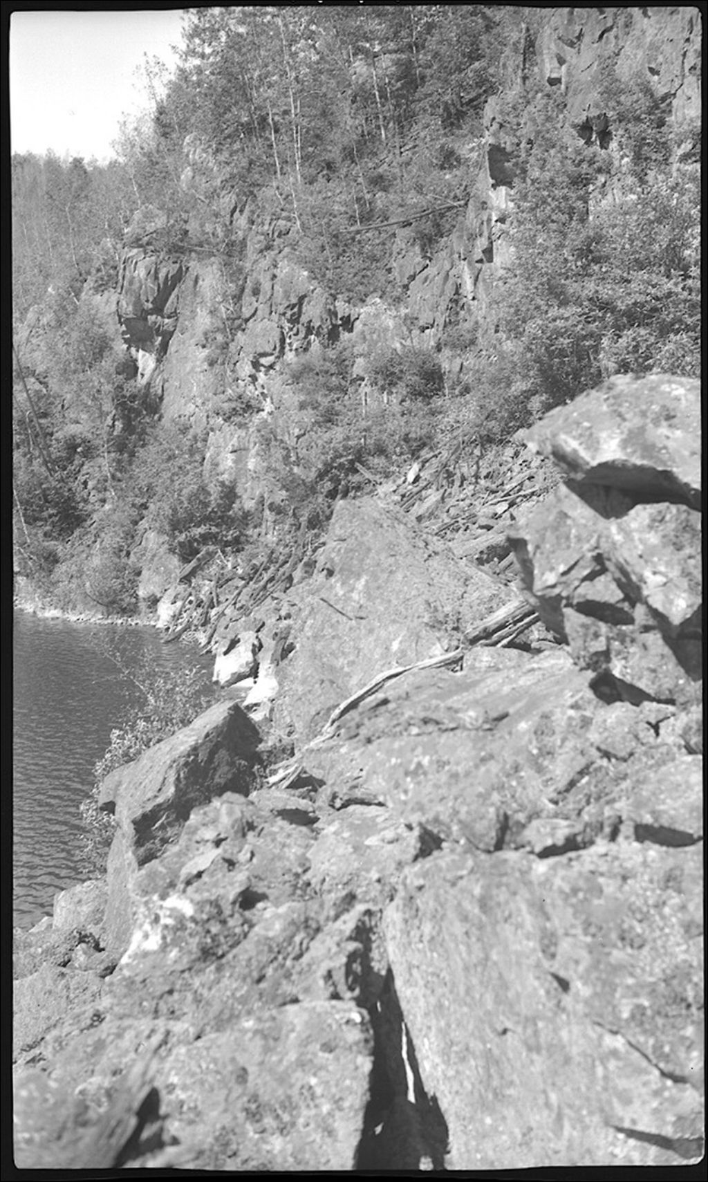 Escarpement granitique sur la rive nord d'un lac du rang 5, canton de Blake