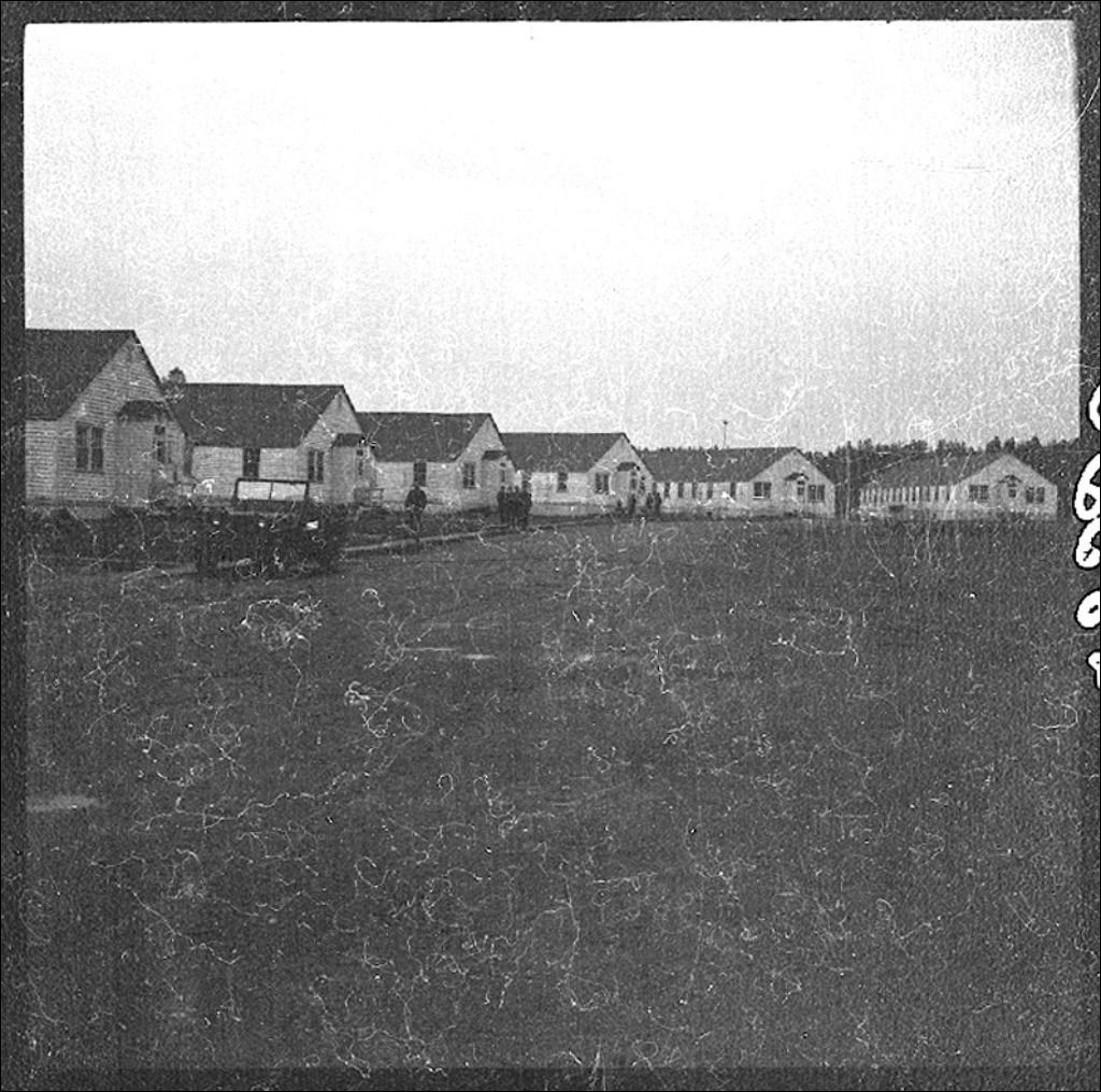 Huttes de l'Aluminium Company mises à la disposition des militaires à Arvida, 1945, Archives nationales à Québec, Fonds Ministère de la Culture et des Communications, (03Q,E6,S7,SS1,D2,P28350), Laval Couet.