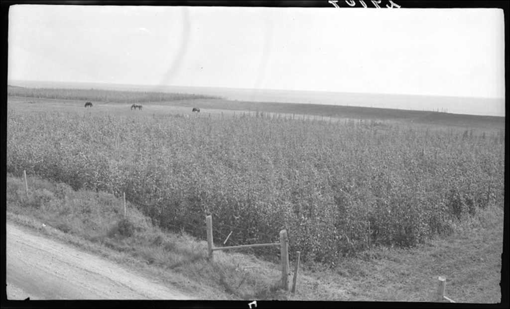 Culture des petits pois verts de M. Dubé à Anse-du-Cap, Gaspésie, 1945, Archives nationales à Québec, Fonds Ministère de la Culture et des Communications, (03Q,E6,S7,SS1,D2,P29107), E.L. Désilets.