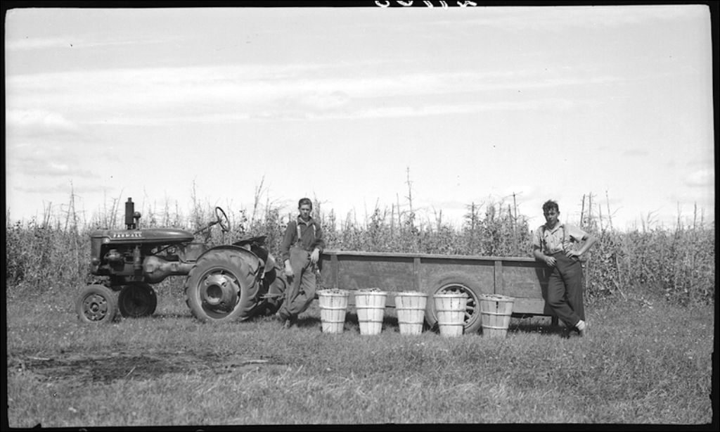 Culture des petits pois verts de M. Dubé à Anse-du-Cap, Gaspésie, 1945, Archives nationales à Québec, Fonds Ministère de la Culture et des Communications, (03Q,E6,S7,SS1,D2,P29108), E.L. Désilets.