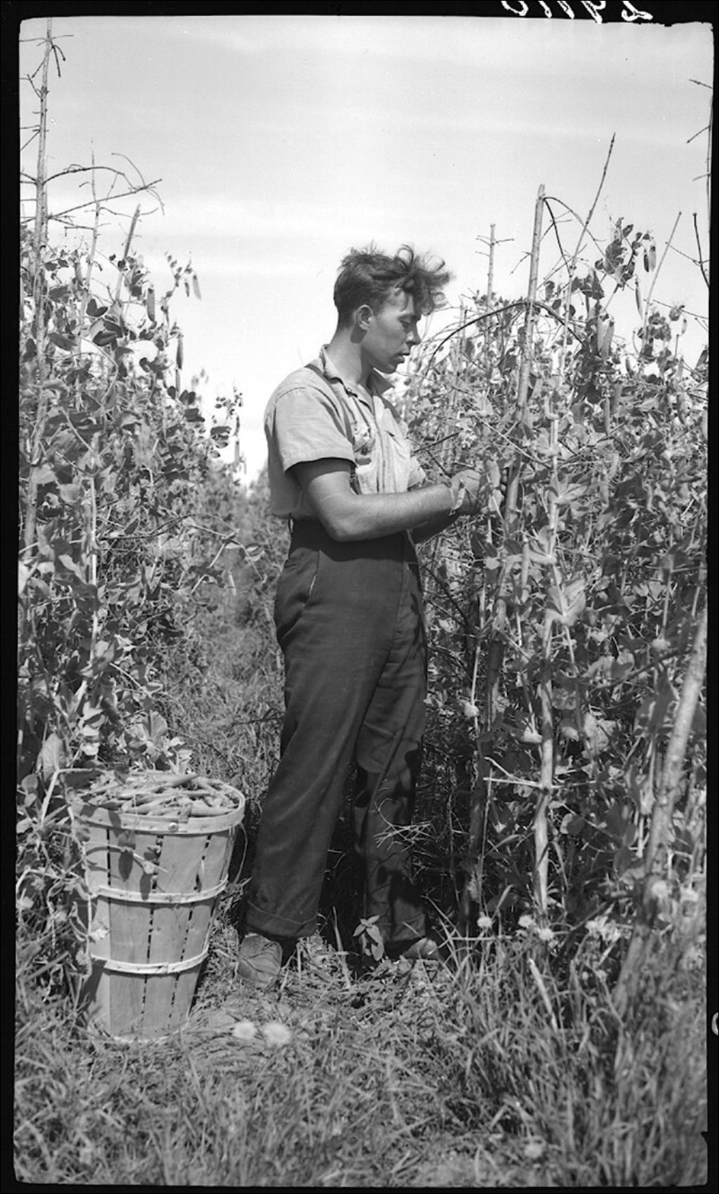 Culture des petits pois verts de M. Dubé à Anse-du-Cap, Gaspésie, 1945, Archives nationales à Québec, Fonds Ministère de la Culture et des Communications, (03Q,E6,S7,SS1,D2,P29110), E.L. Désilets.