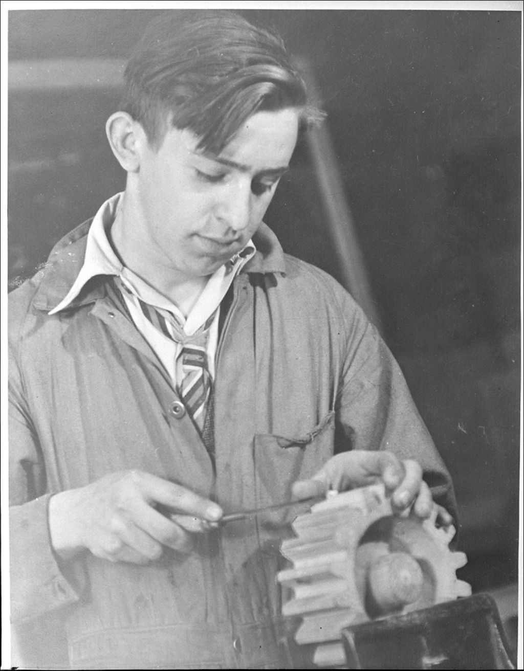 Élève fabriquant des roues d'engrenage à l'École des Arts et Métiers de Verdun