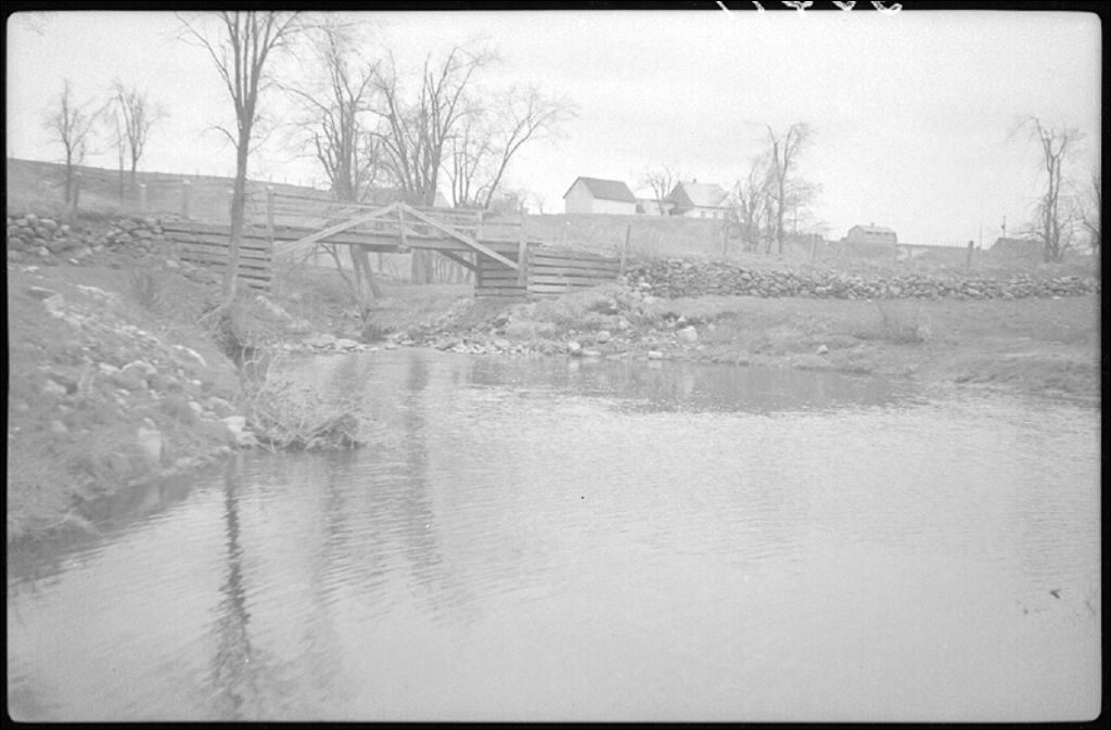 Pont sur la rivière Fourchette à Saint-Henri, comté de Lévis, 1946, Archives nationales à Québec, Fonds Ministère de la Culture et des Communications, (03Q,E6,S7,SS1,D2,P30677), Théo. Deschêne.