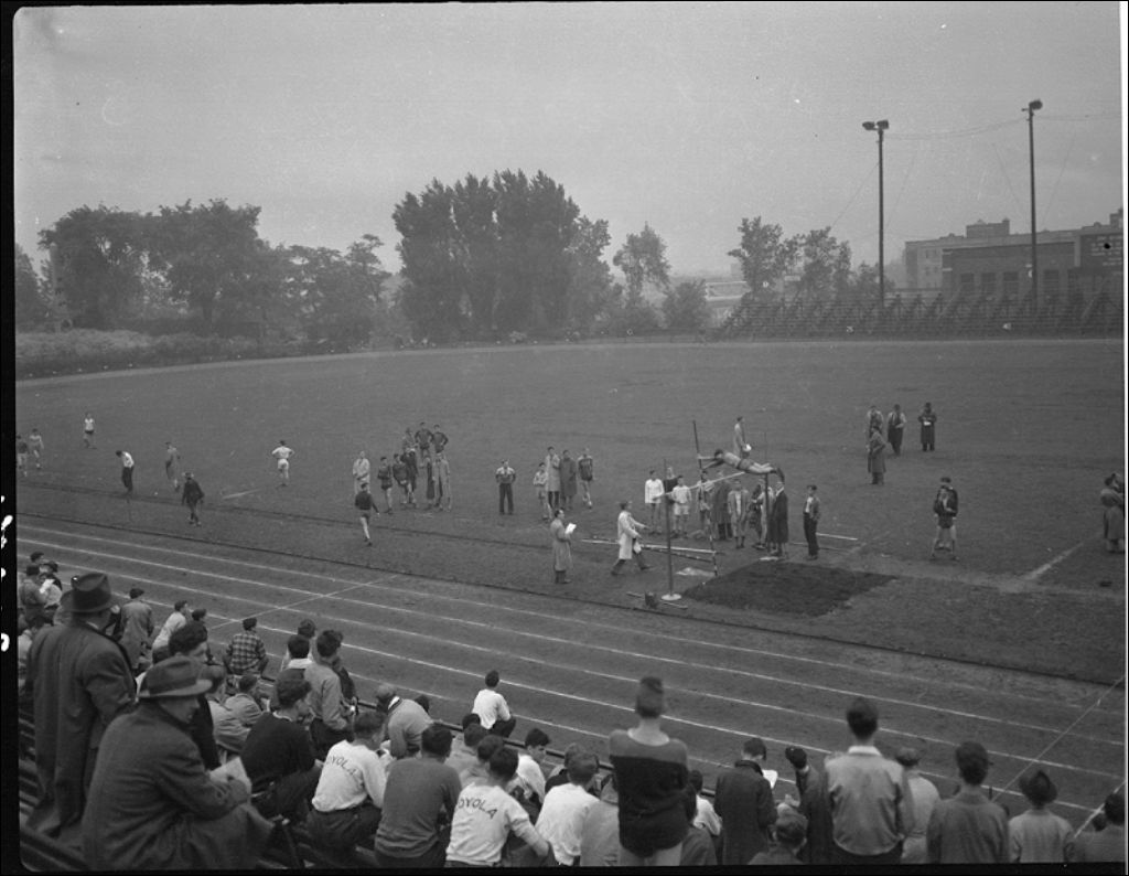Saut à la perche au stade Molson, Montréal, 1946, Archives nationales à Québec, Fonds Ministère de la Culture et des Communications, (03Q,E6,S7,SS1,D2,P31071), Neuville Bazin.