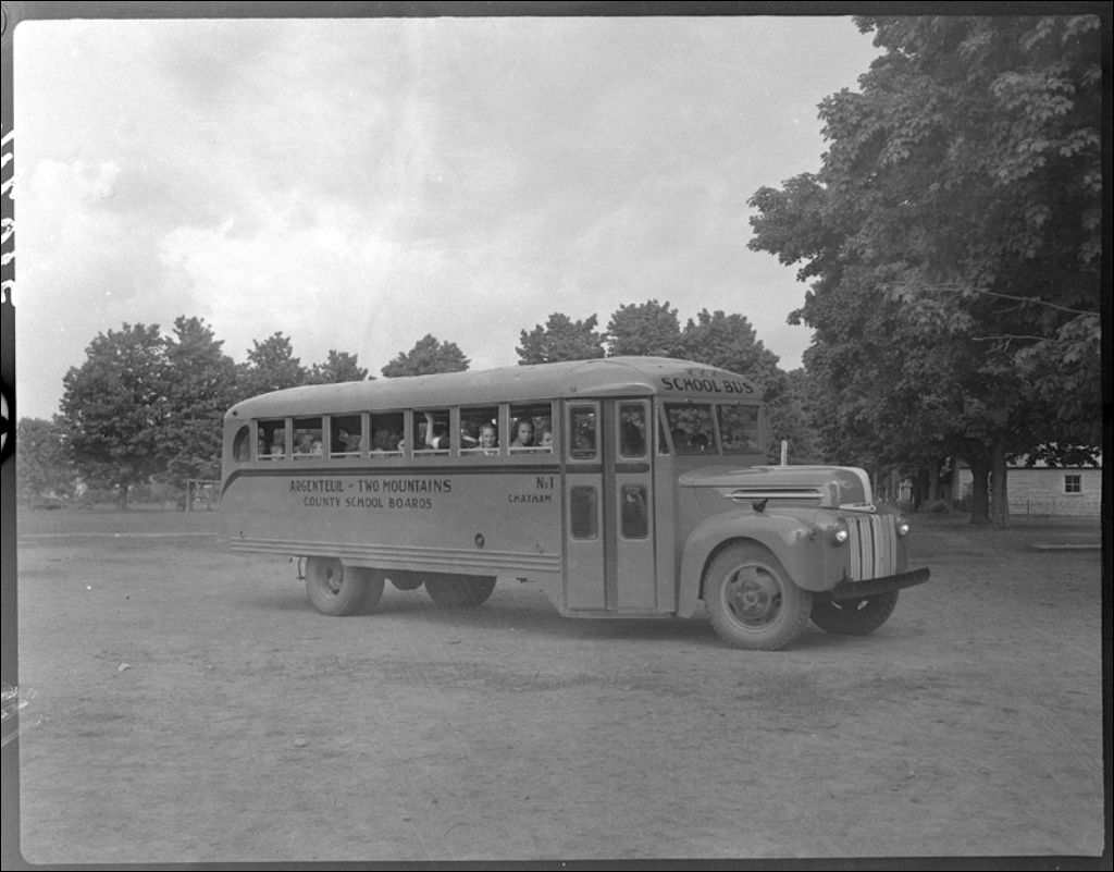 Autobus scolaire Argenteuil-Deux-Montagnes, 1946, Archives nationales à Québec, Fonds Ministère de la Culture et des Communications, (03Q,E6,S7,SS1,D2,P31074), Neuville Bazin.