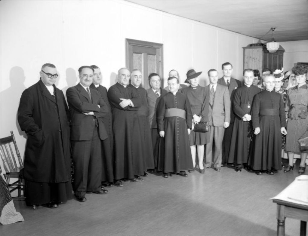 Exposition de vêtements liturgiques pour clercs de St-Viateur sur Grande-Allée à Québec, 1947, Archives nationales à Québec, Fonds Ministère de la Culture et des Communications, (03Q,E6,S7,SS1,D2,P33391), Neuville Bazin.