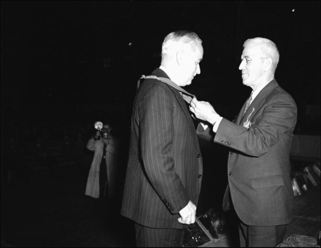 Remise des prix du Mérite agricole, 1946, Archives nationales à Québec, Fonds Ministère de la Culture et des Communications, (03Q,E6,S7,SS1,D2,P33507), Photographe non identifié.