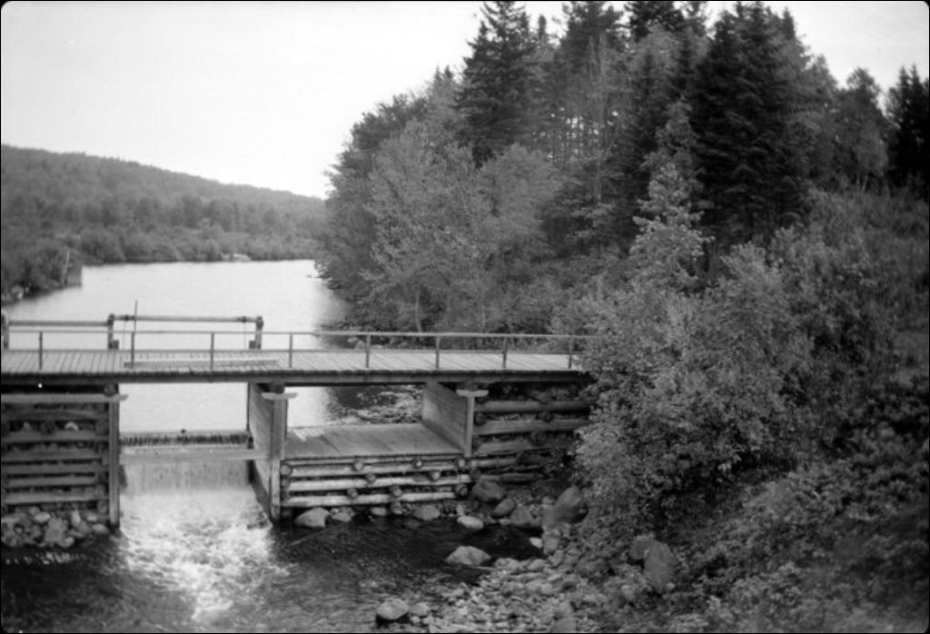 Barrage à l'issue du lac Saint-Joseph, comté de Portneuf, 1946, Archives nationales à Québec, Fonds Ministère de la Culture et des Communications, (03Q,E6,S7,SS1,D2,P33792), Charles-Edmond Deslauriers.