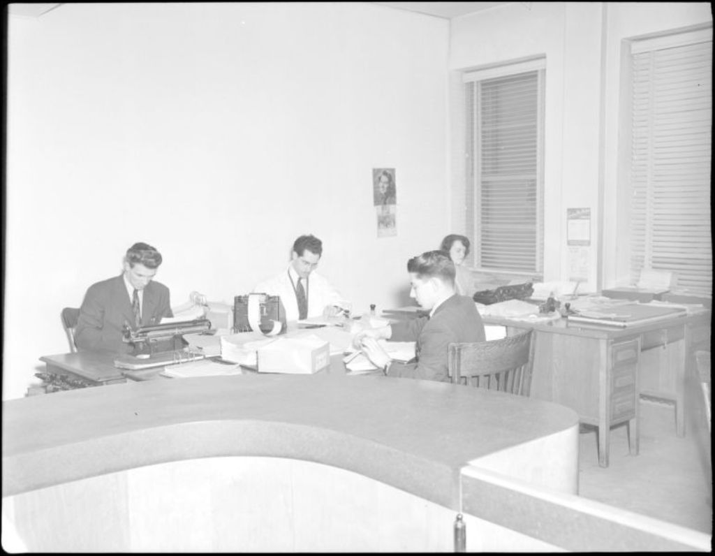 Mademoiselle Thérèse Chabot, sténo-dactylo de l'association de la fourrure, et ses compagnons de travail, à Québec