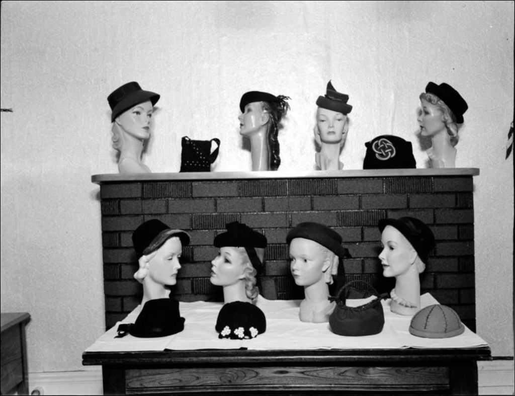 Exposition de chapeaux, 1947, Archives nationales à Québec, Fonds Ministère de la Culture et des Communications, (03Q,E6,S7,SS1,D2,P35587), Neuville Bazin.