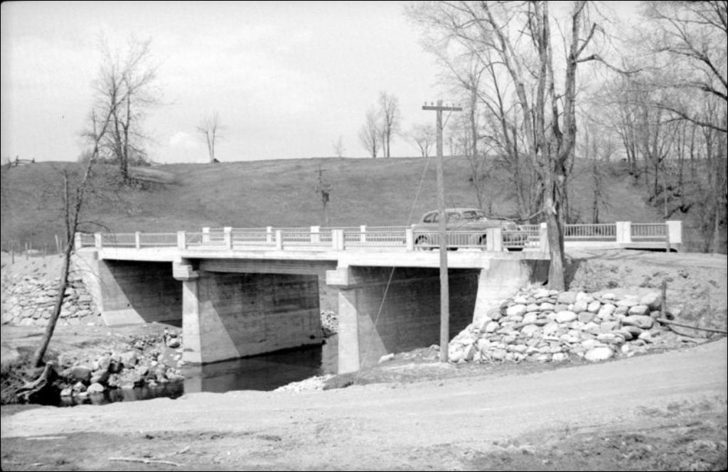 Pont sur la rivière Fourchette à Saint-Henri, comté de Lévis, 1947, Archives nationales à Québec, Fonds Ministère de la Culture et des Communications, (03Q,E6,S7,SS1,D2,P36286), C. Milot.