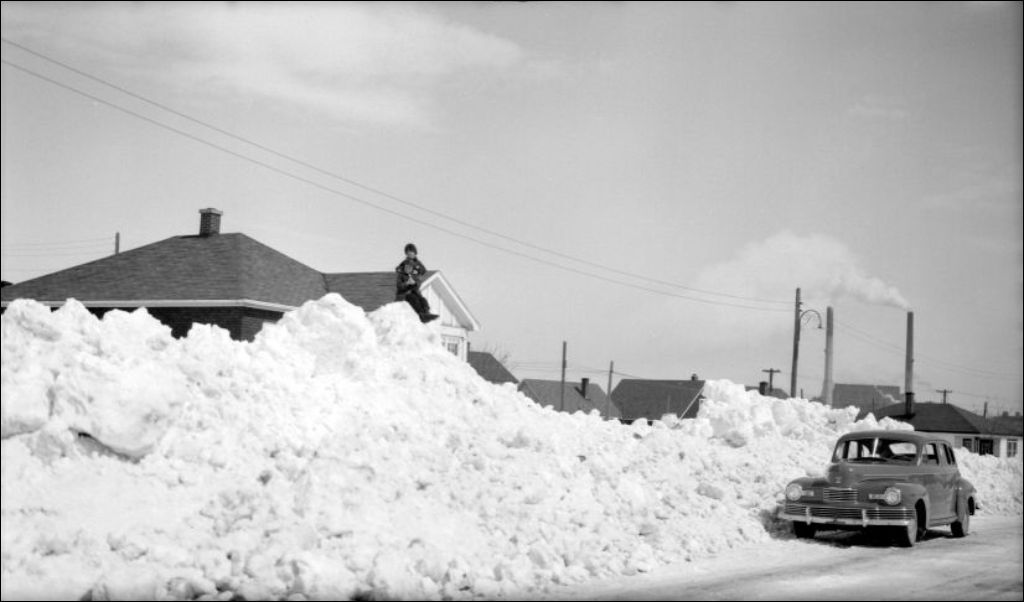 Banc de neige devant une maison aprèes une terrible tempête, canton de Rouyn