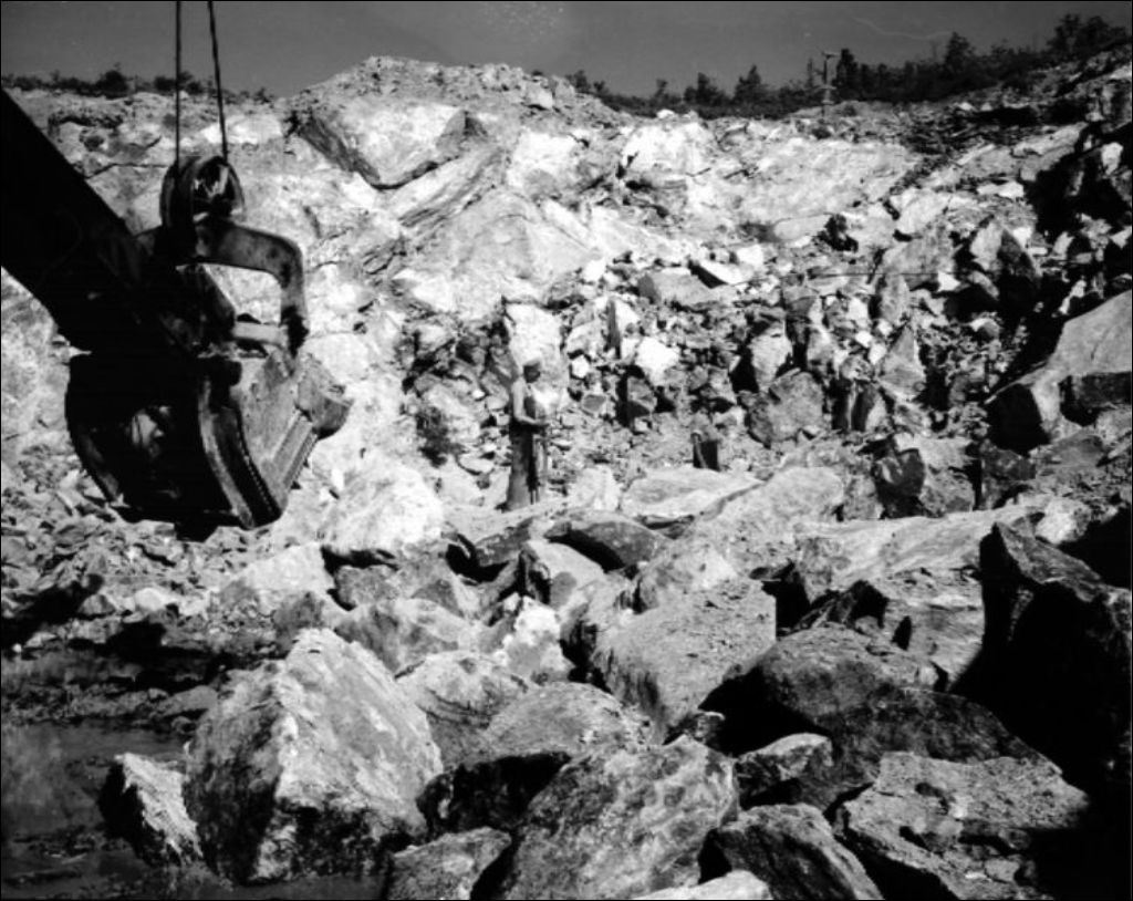 Extraction d'amiante à ciel ouvert à Thetford Mines, 1947, Archives nationales à Québec, Fonds Ministère de la Culture et des Communications, (03Q,E6,S7,SS1,D2,P38803), J.W. Michaud.