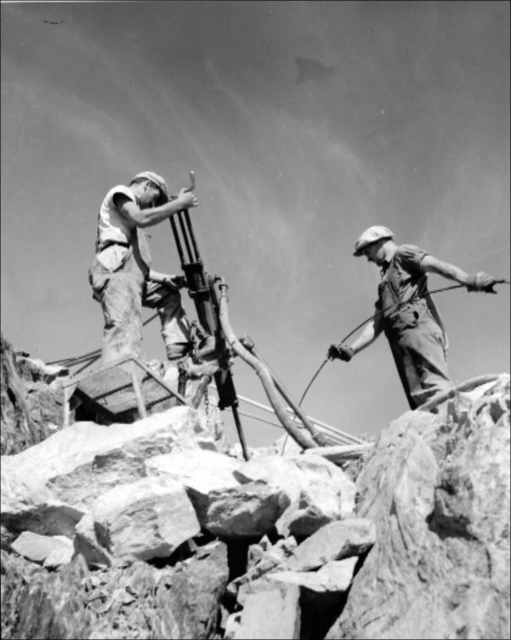 Extraction d'amiante à l'aide d'une foreuse à air comprimé à Thetford Mines, 1947, Archives nationales à Québec, Fonds Ministère de la Culture et des Communications, (03Q,E6,S7,SS1,D2,P38806), J.W. Michaud.
