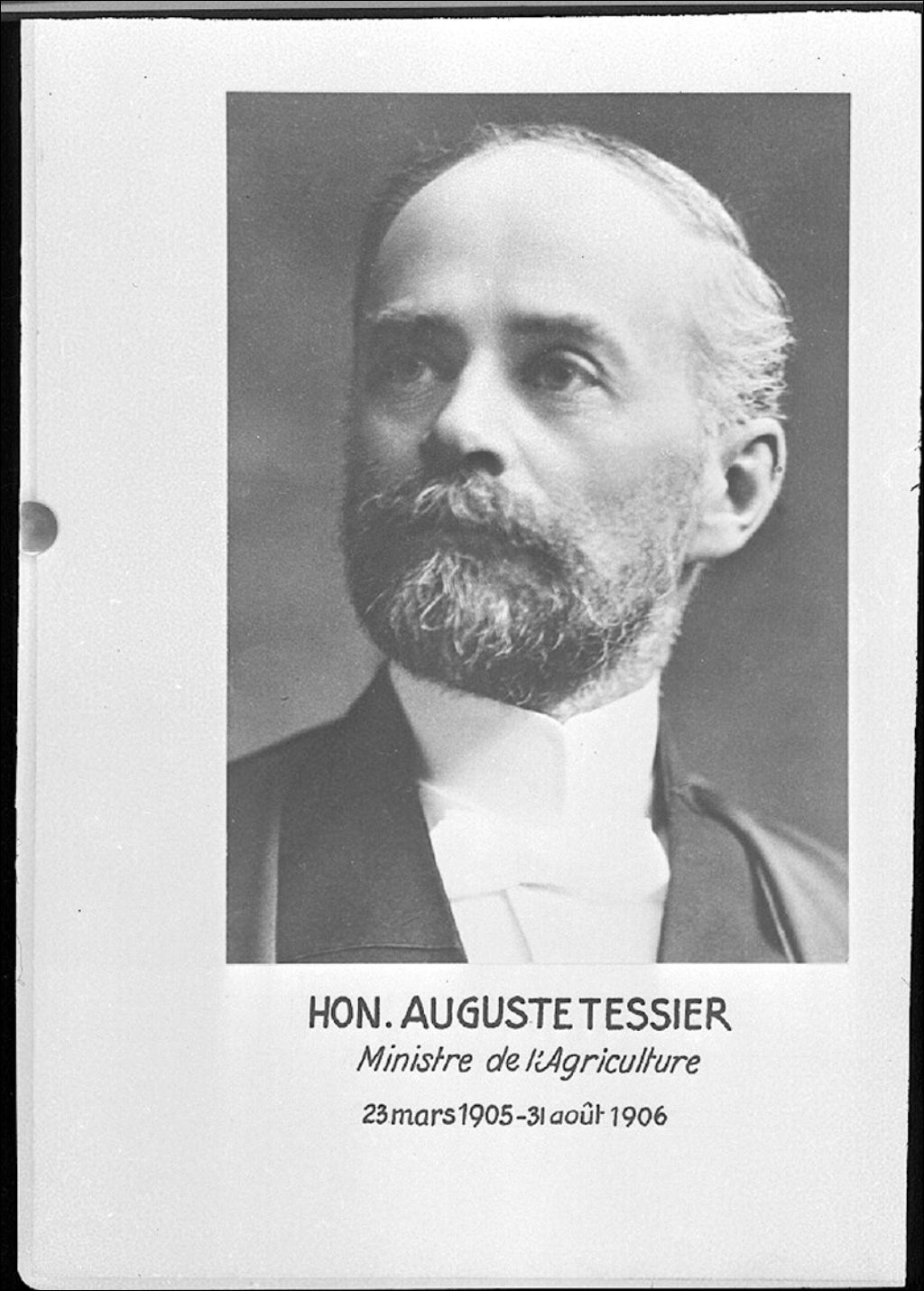 L'Honorable Auguste Tessier, ministre de l'Agriculture de 1905 à 1906, 1941, Archives nationales à Québec, Fonds Ministère de la Culture et des Communications, (03Q,E6,S7,SS1,D2,P4395), Neuville Bazin.