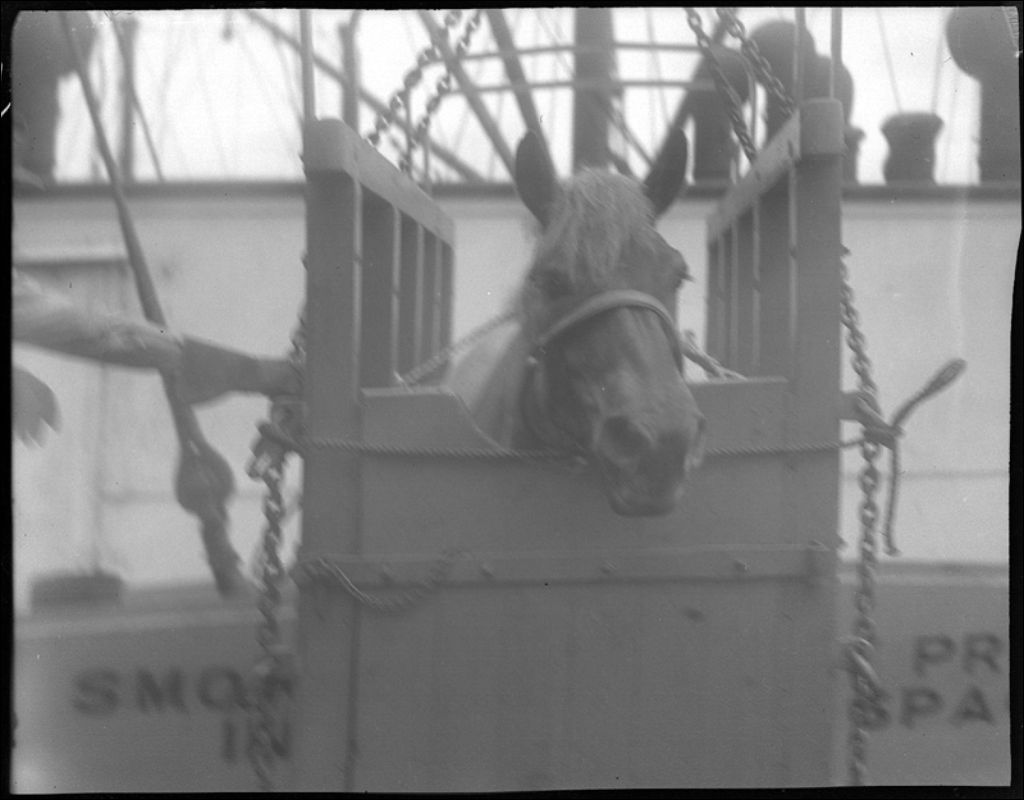 Déchargement de chevaux belges à Valleyfield en 1936