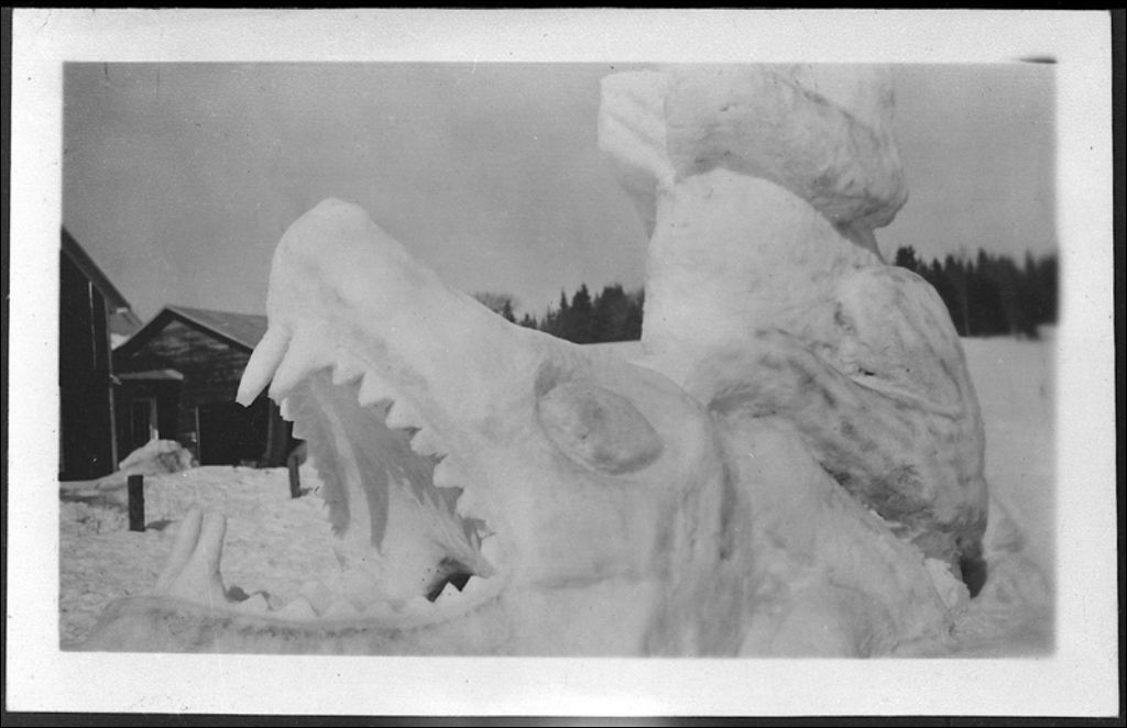 Sculpture sur neige à Morin Heights, 1941, Archives nationales à Québec, Fonds Ministère de la Culture et des Communications, (03Q,E6,S7,SS1,D2,P4583), Docteur Percival.