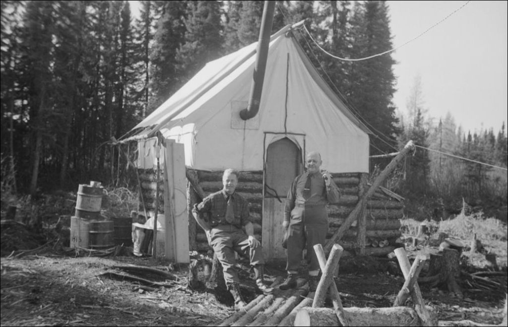 Bachelor Lake, camp O'Brien Mines Limited, canton de Lesueur, J. Robinson, Eugène Larochelle, 1947, Archives nationales à Québec, Fonds Ministère de la Culture et des Communications, (03Q,E6,S7,SS1,D2,P60052), A.-O. Dufresne.