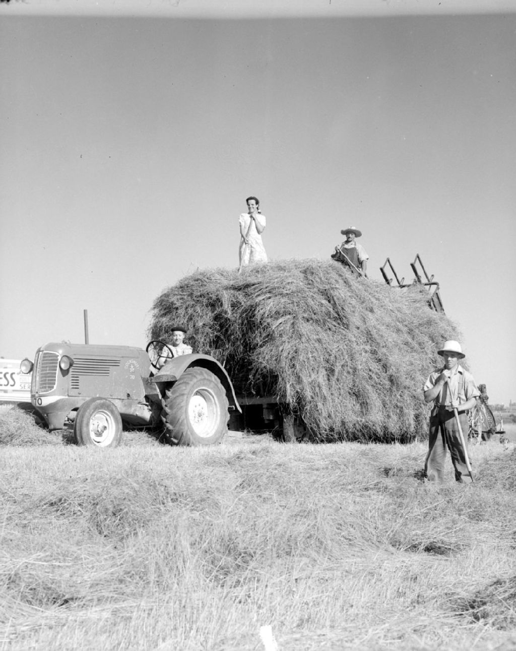 Récolte du foin avec un tracteur et un chargeur à L'Ancienne-Lorette, 1947, Archives nationales à Québec, Fonds Ministère de la Culture et des Communications, (03Q,E6,S7,SS1,D2,P61336), Omer Beaudoin.