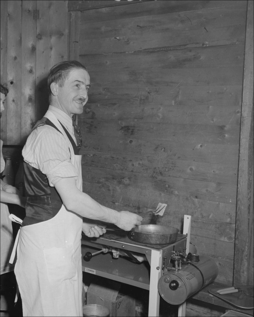 Le cuisinier apprête des oreilles de «C» à Plessisville, 1948, Archives nationales à Québec, Fonds Ministère de la Culture et des Communications, (03Q,E6,S7,SS1,D2,P62235), Omer Beaudoin.