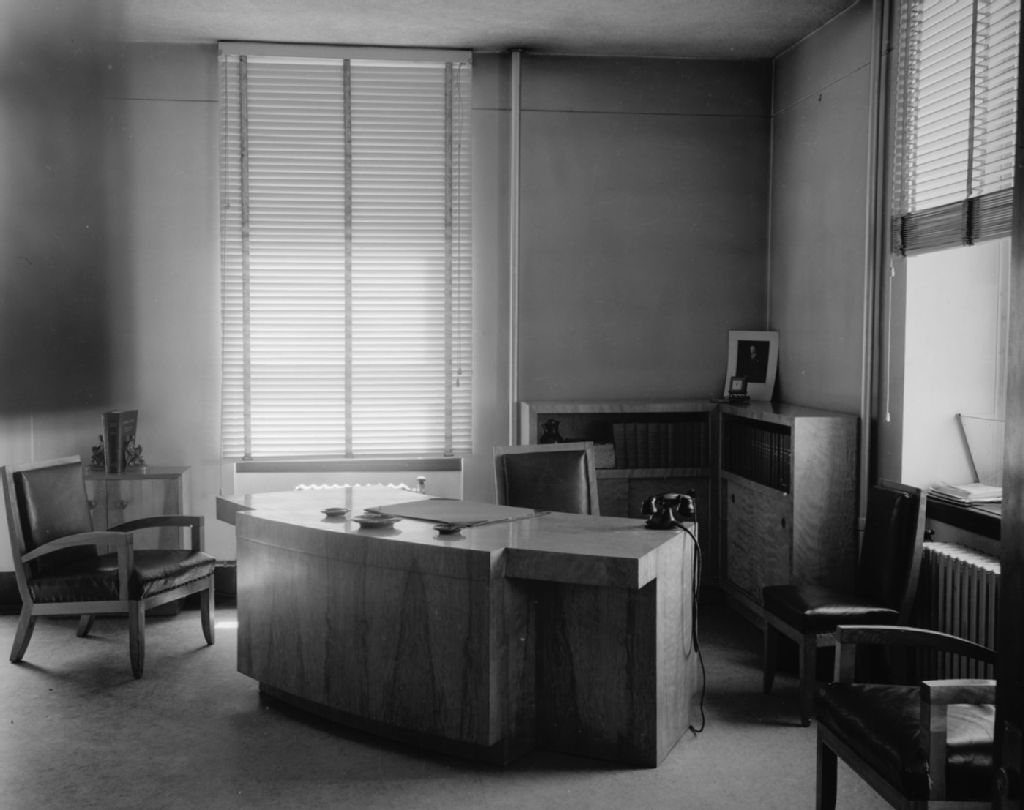 Ameublement conçu et fabriqué par Henri Beaulac, professeur à l'École du Meuble, 1948, Archives nationales à Québec, Fonds Ministère de la Culture et des Communications, (03Q,E6,S7,SS1,D2,P62434), Neuville Bazin.
