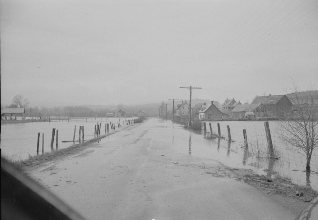 Inondation du printemps à Nouvelle-Ouest. Pont Dugas sur la rivière Nouvelle à Nouvelle, 1948, Archives nationales à Québec, Fonds Ministère de la Culture et des Communications, (03Q,E6,S7,SS1,D2,P62784), M. Gravel.