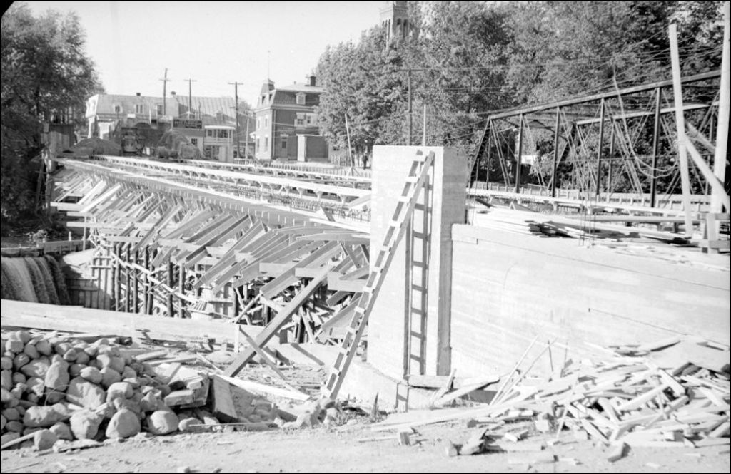 Pont sur la rivière de l'Achigan à Saint-Lin, comté de L'Assomption, 1948, Archives nationales à Québec, Fonds Ministère de la Culture et des Communications, (03Q,E6,S7,SS1,D2,P62958), Olivier Desjardins.