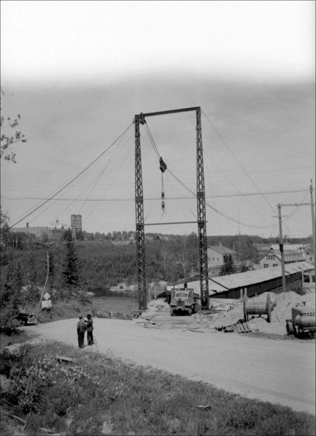 Construction d'un pont, 1948, Archives nationales à Québec, Fonds Ministère de la Culture et des Communications, (03Q,E6,S7,SS1,D2,P63360), G.R. Hamilton.
