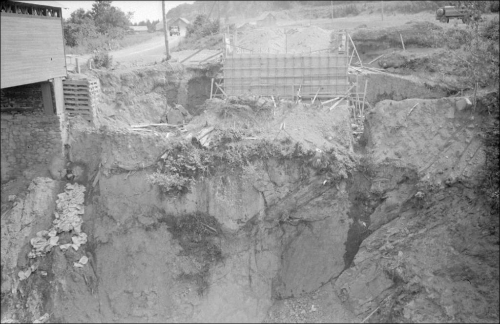 Pont en construction sur le ruisseau Vapeur dans le canton Dalibaire, comté de Matane, 1948, Archives nationales à Québec, Fonds Ministère de la Culture et des Communications, (03Q,E6,S7,SS1,D2,P63903), Philippe-Auguste Dupuis.