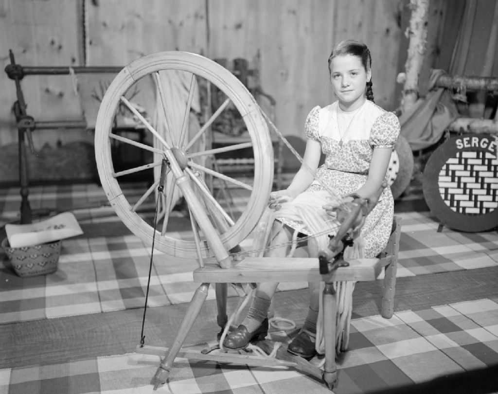 Exposition d'Arts Domestiques au Café du Parlement à Québec: jeune fille filant