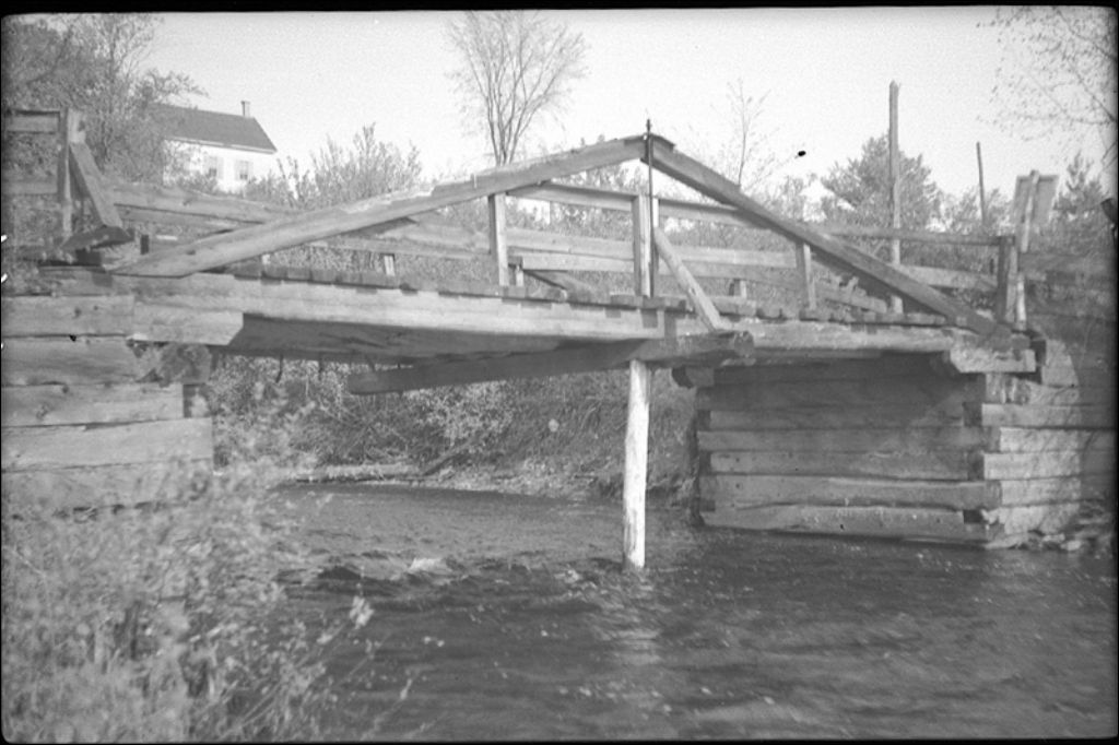 Pont sur le ruisseau Rouge à Lingwick, canton Compton, 1942, Archives nationales à Québec, Fonds Ministère de la Culture et des Communications, (03Q,E6,S7,SS1,D2,P6461), L. Martin.